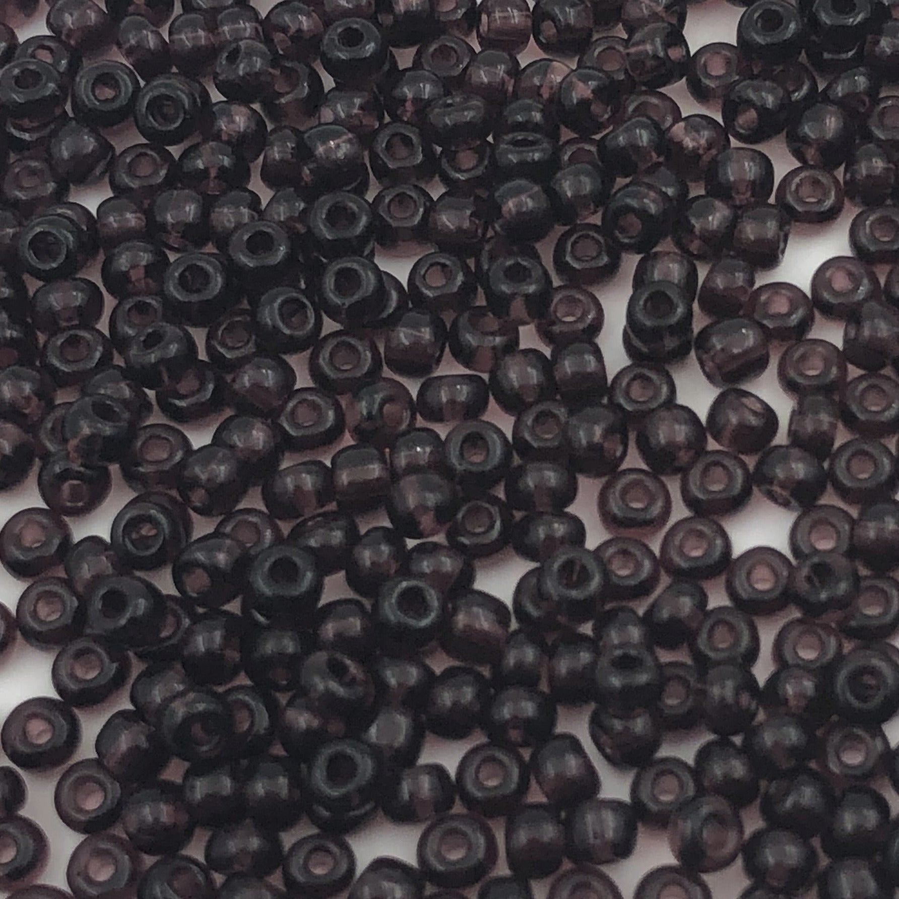 6/0 seed beads.  Made in the Czech Republic.  Czech seed beads are good quality, although not as uniform as Japanese seed beads.