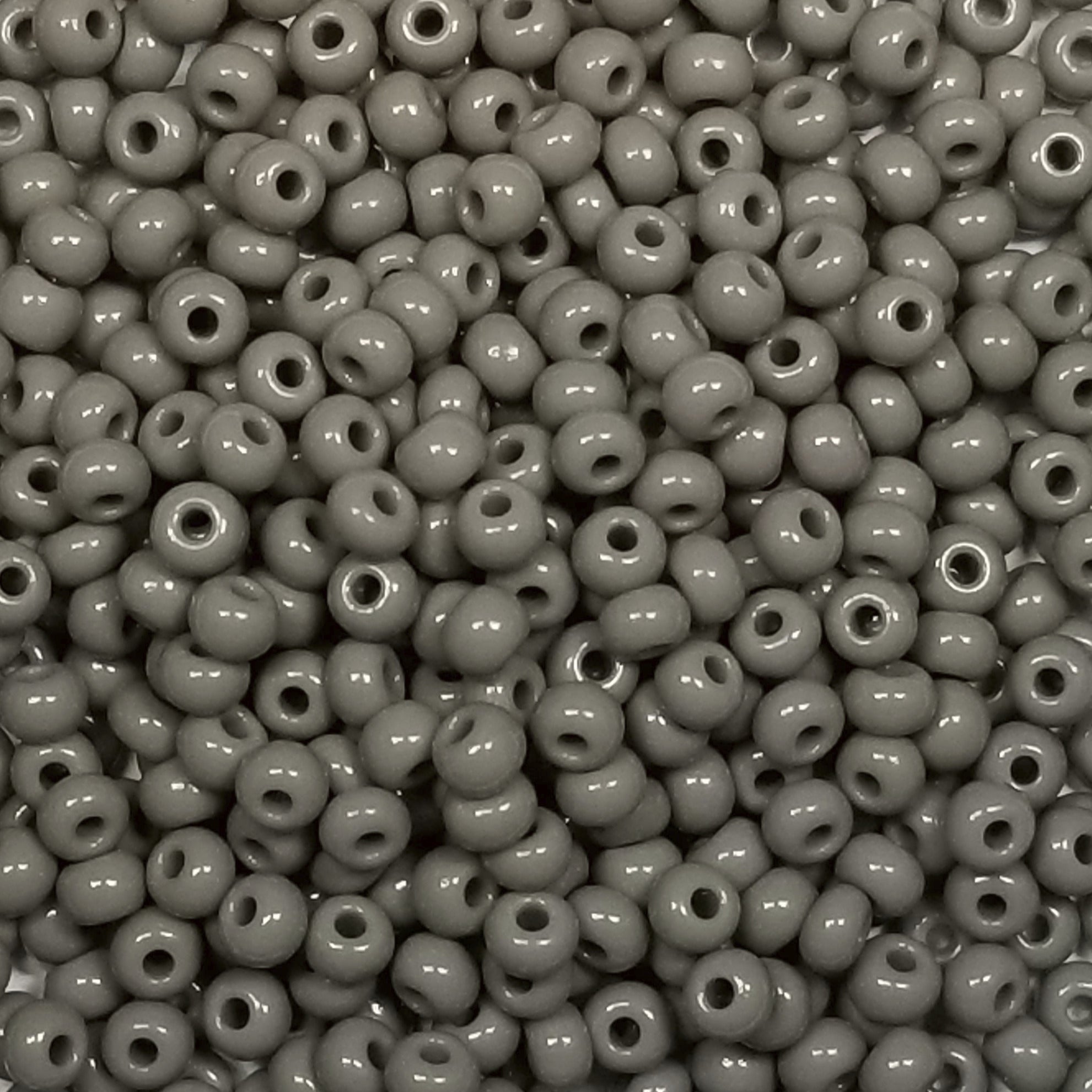 6/0 seed beads. Made in the Czech Republic. Czech seed beads are good quality, although not as uniform as Japanese seed beads.