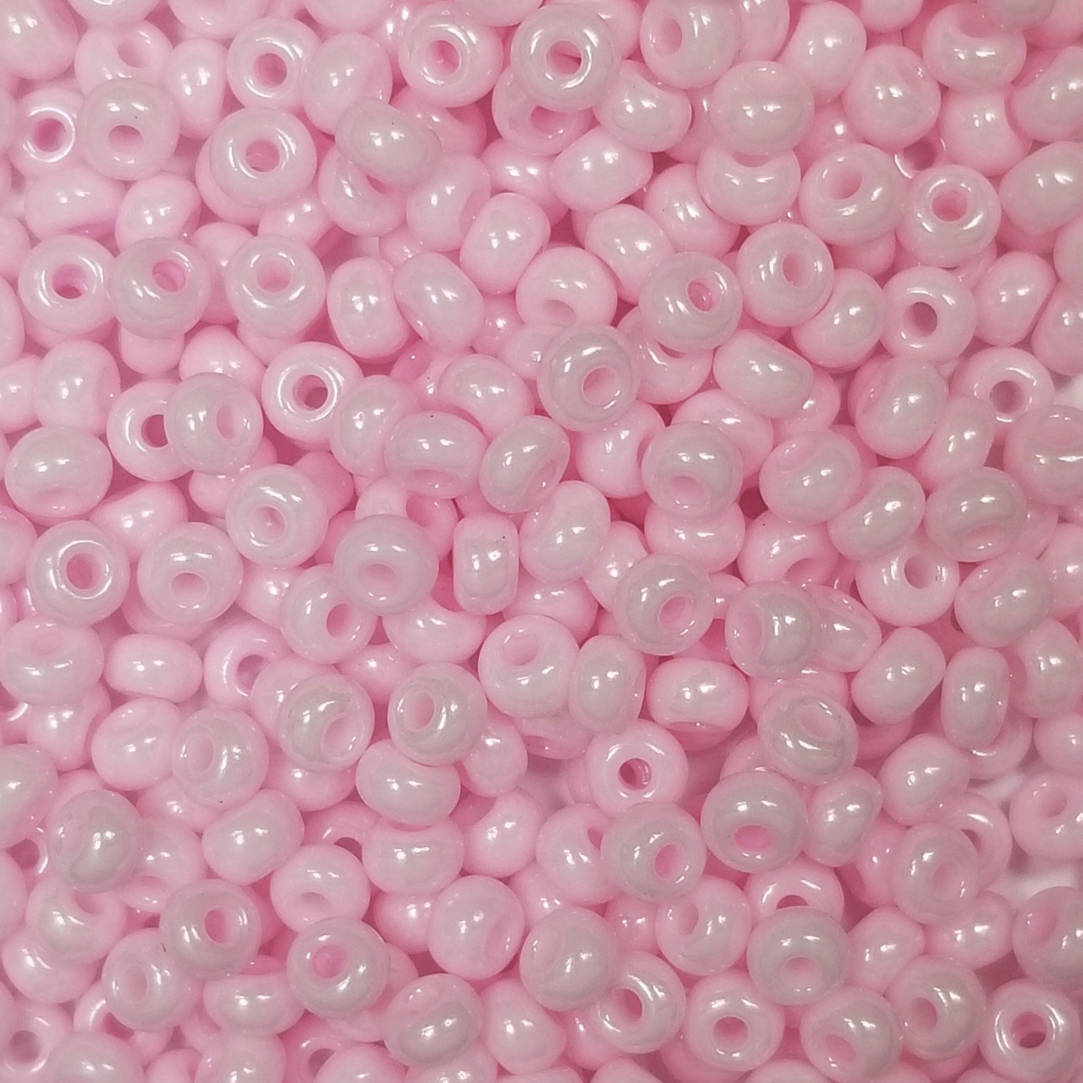 6/0 seed beads. Made in the Czech Republic. Czech seed beads are good quality, although not as uniform as Japanese seed beads.