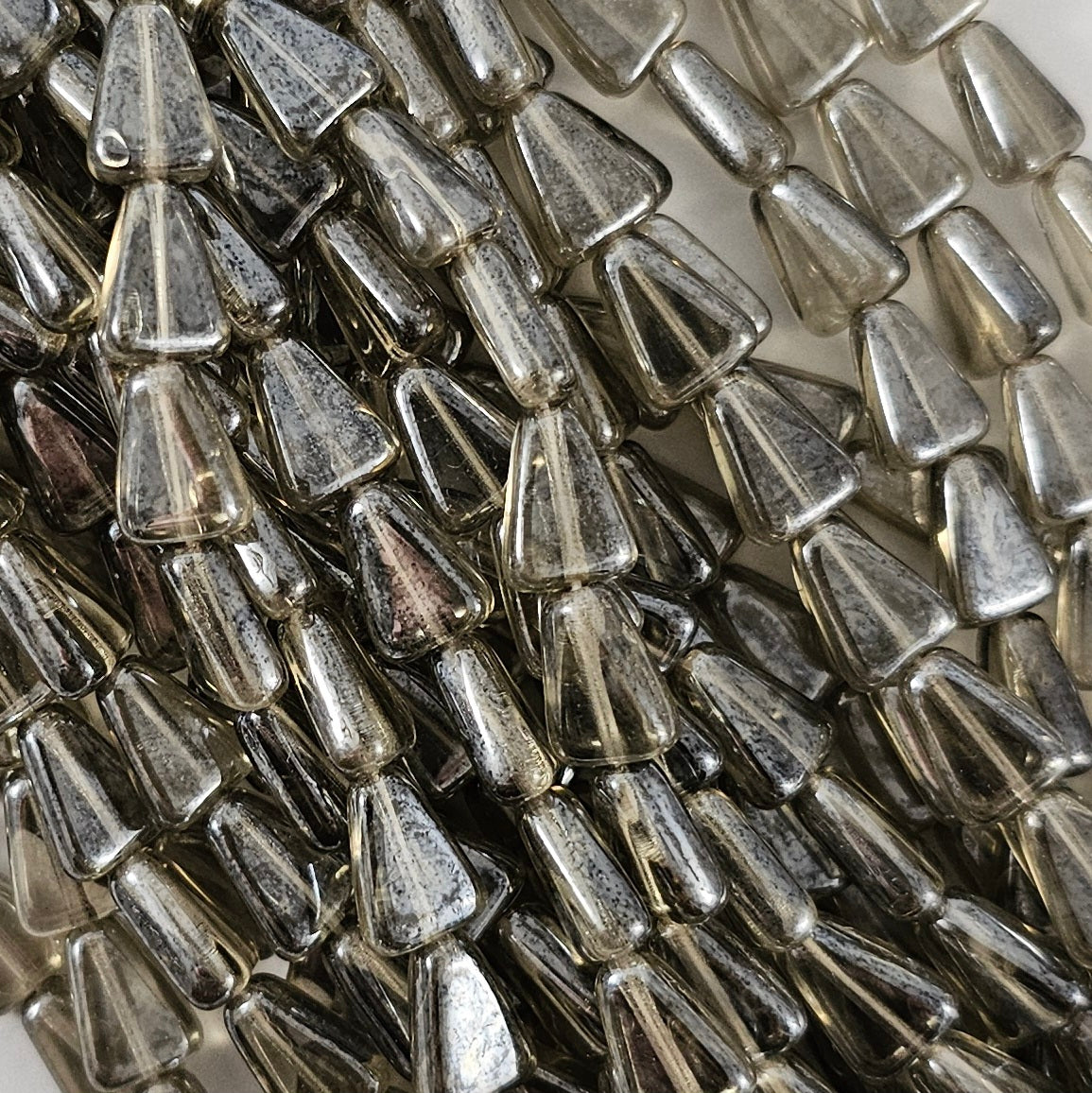 10x7mm Glass Triangles. 10 inch strand. 25 beads per strand. Made in the Czech Republic.