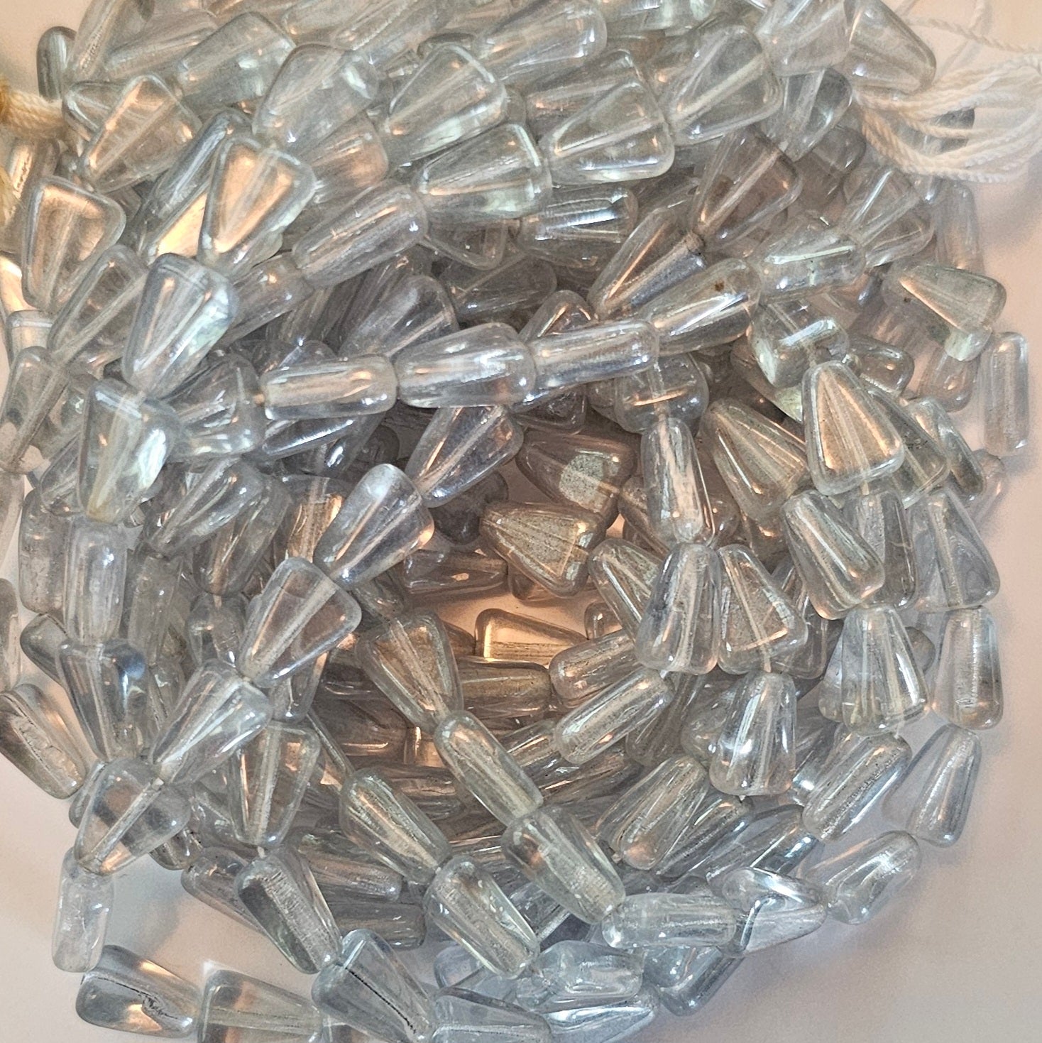 10x7mm Glass Triangles. 10 inch strand. 25 beads per strand. Made in the Czech Republic.