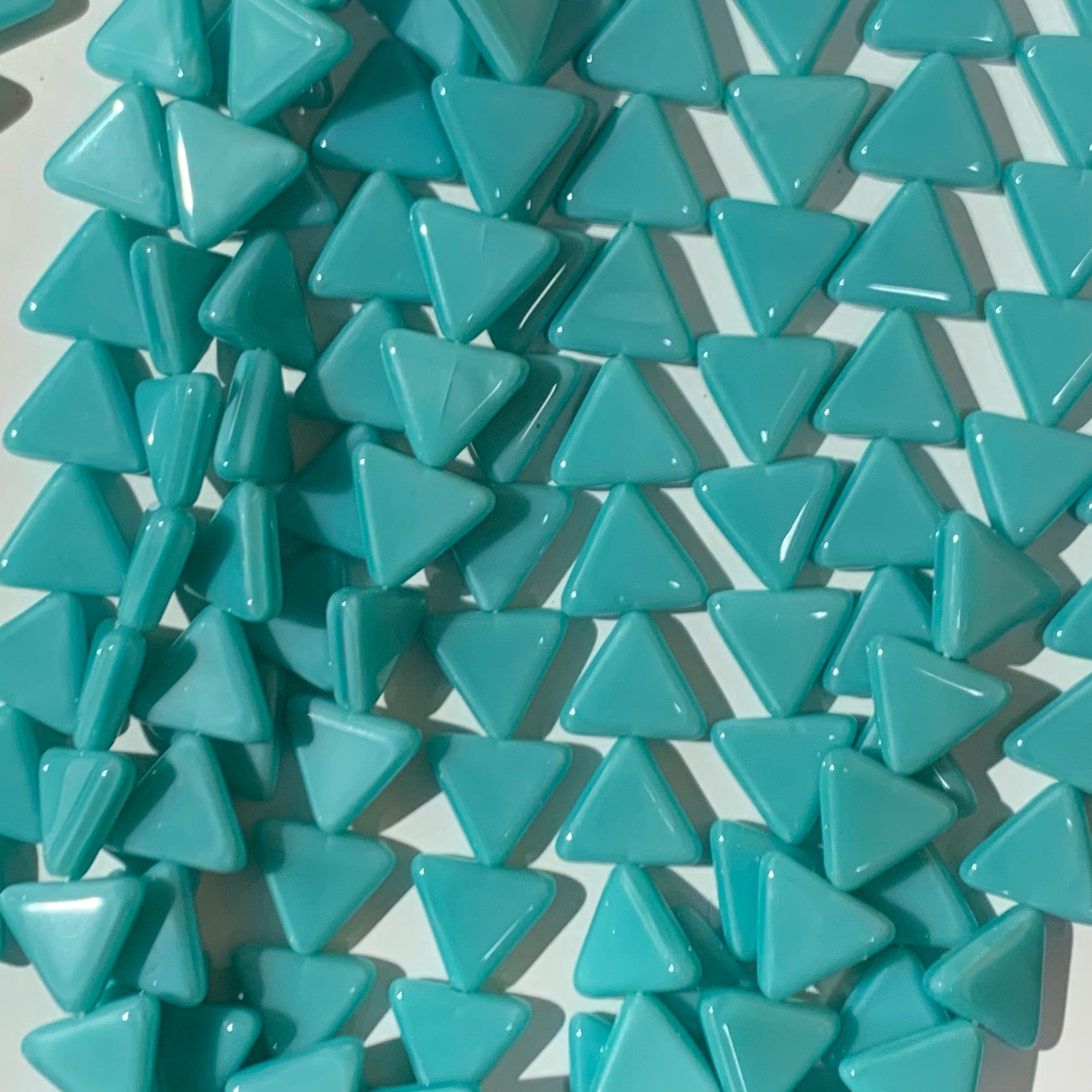 12mm glass triangle beads. Made in the Czech Republic. Sold in bags or strands of 25.