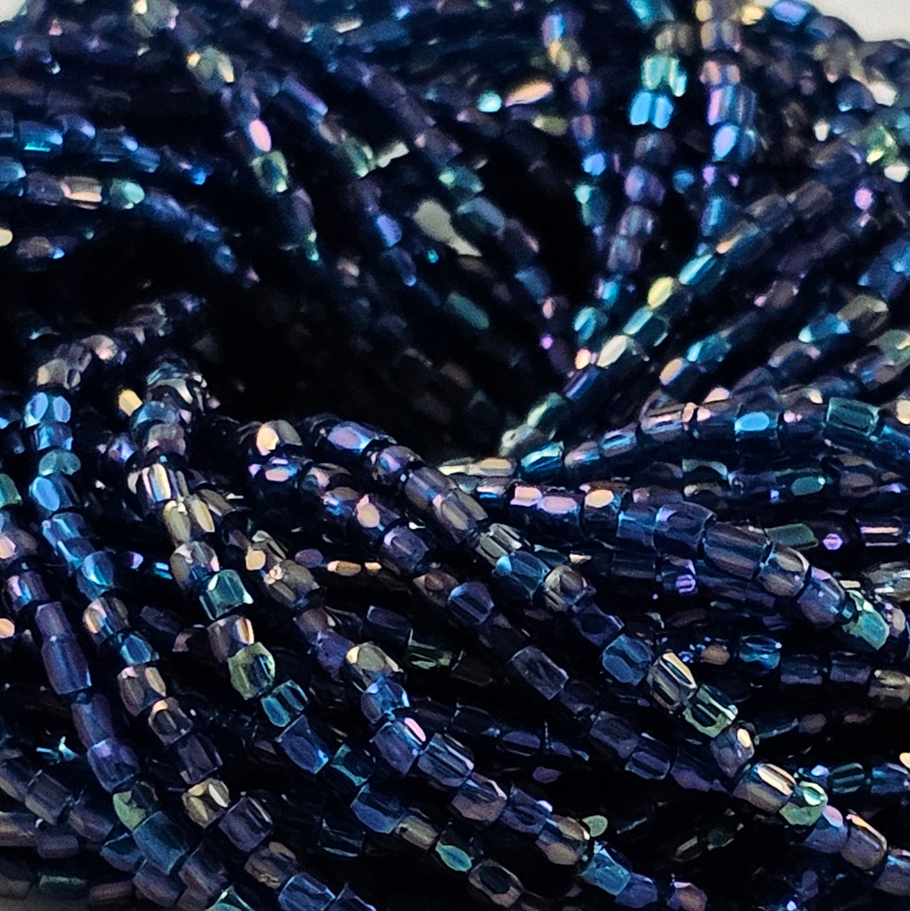 Faceted 9/0 seed beads.