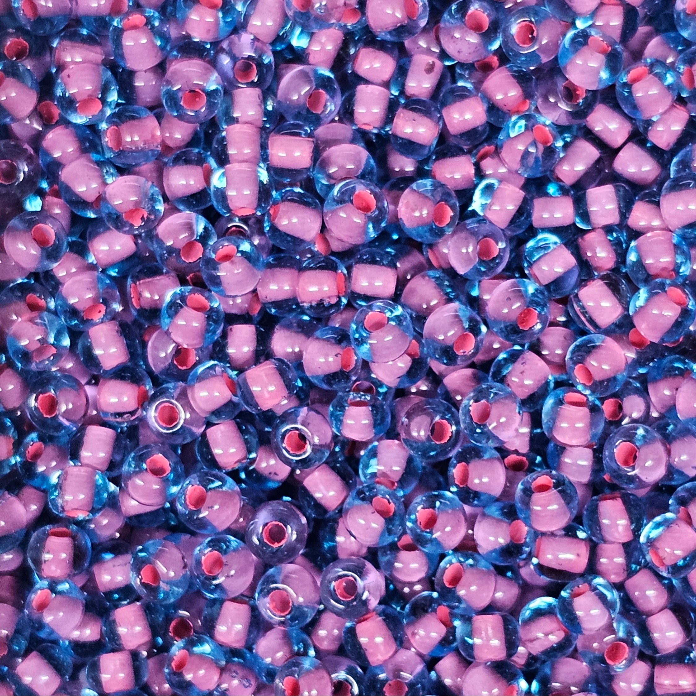 6/0 seed beads. Made in the Czech Republic. Czech seed beads are good quality, although not as uniform as Japanese seed beads.