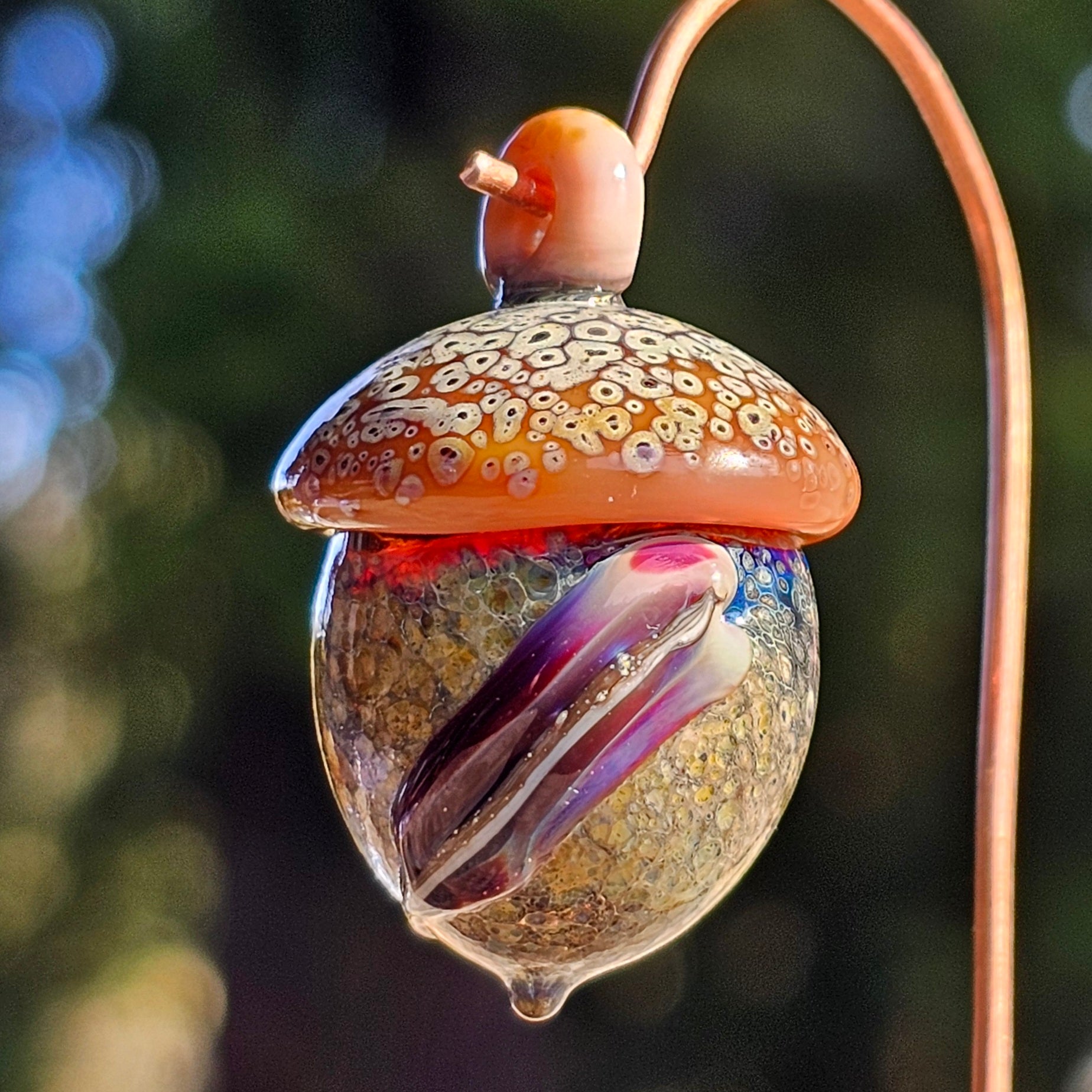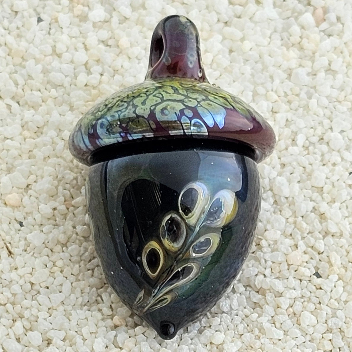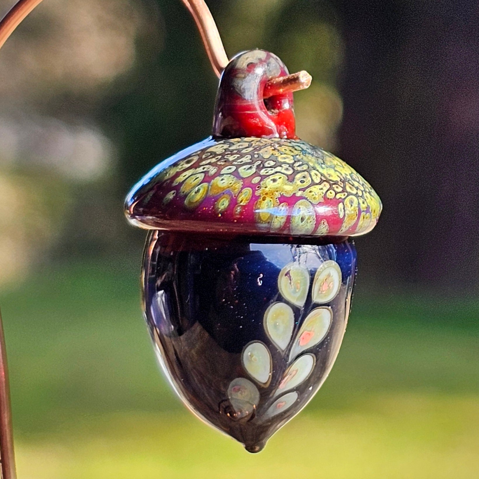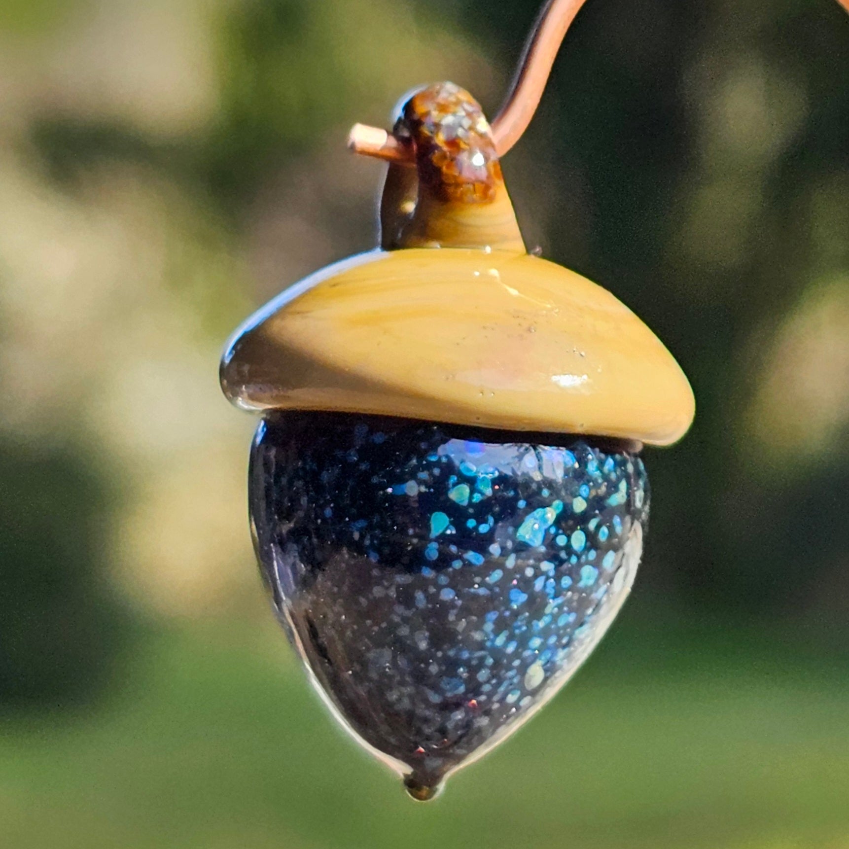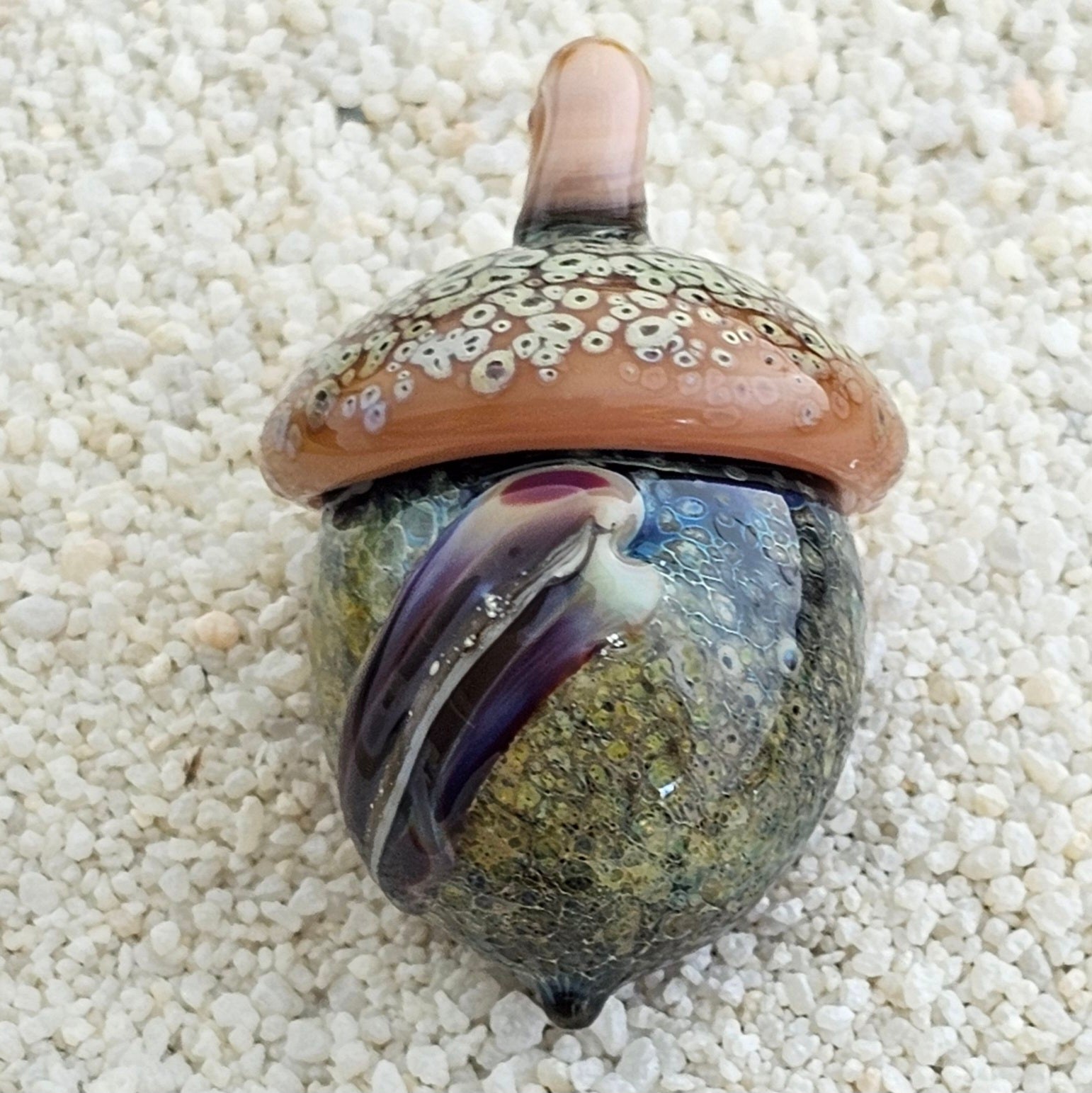 Each acorn is one of a kind and was made by Merry, the owner of Talisman Beads. They are made one at a time using a torch and rods of glass (lampwork).