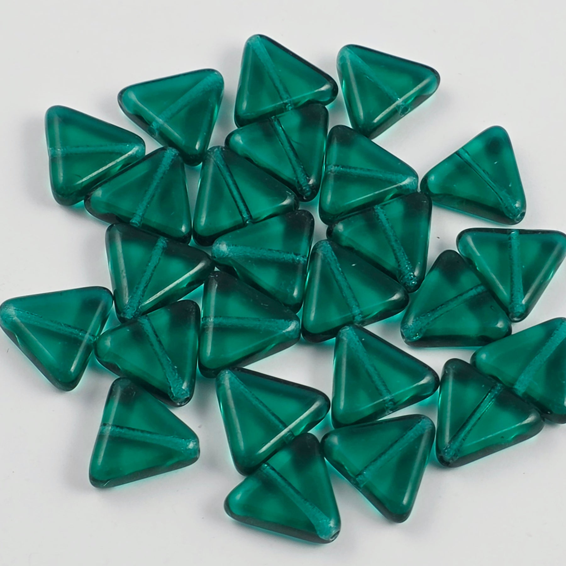 12mm glass triangle beads. Made in the Czech Republic. Sold in bags of 25.