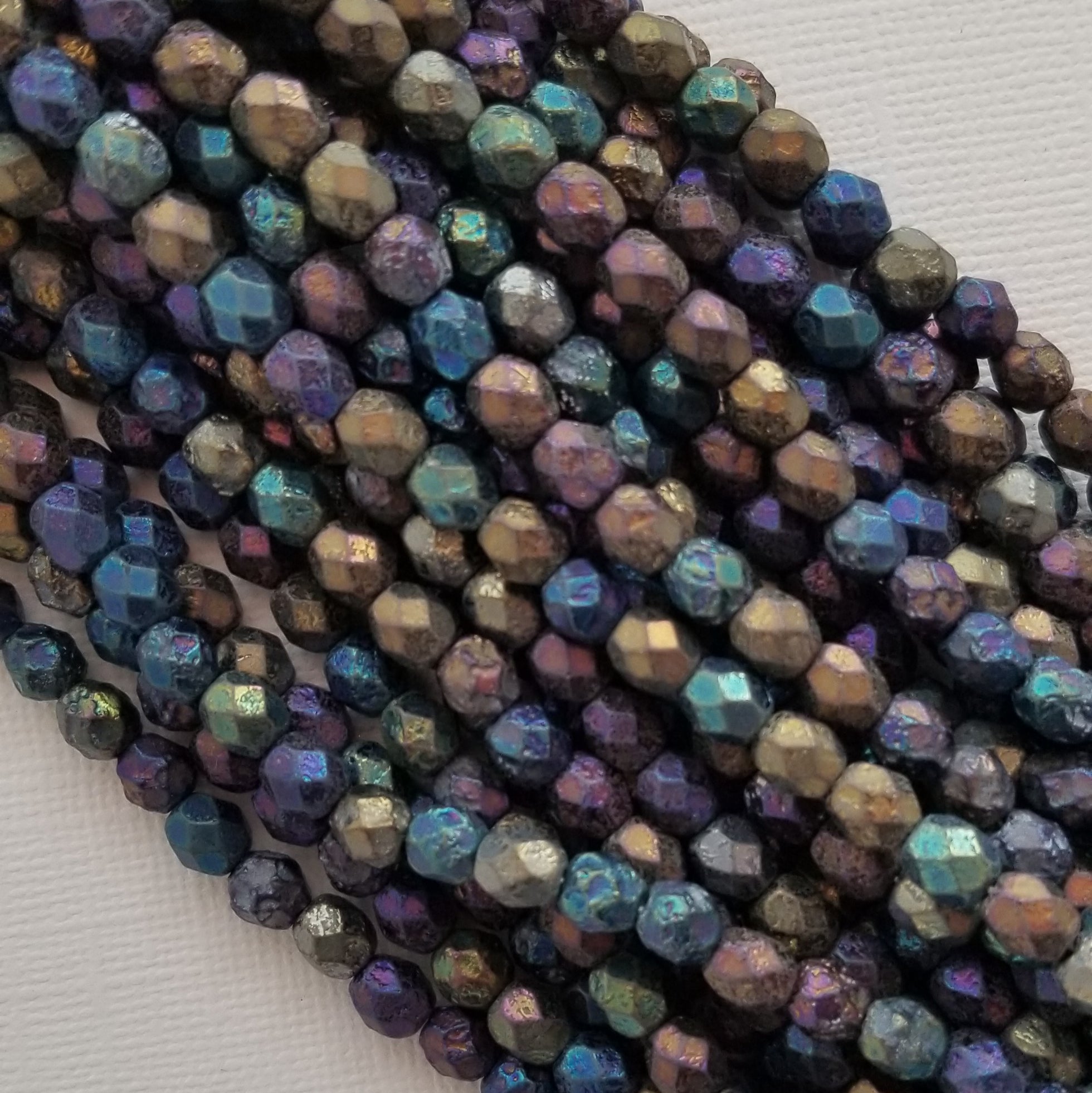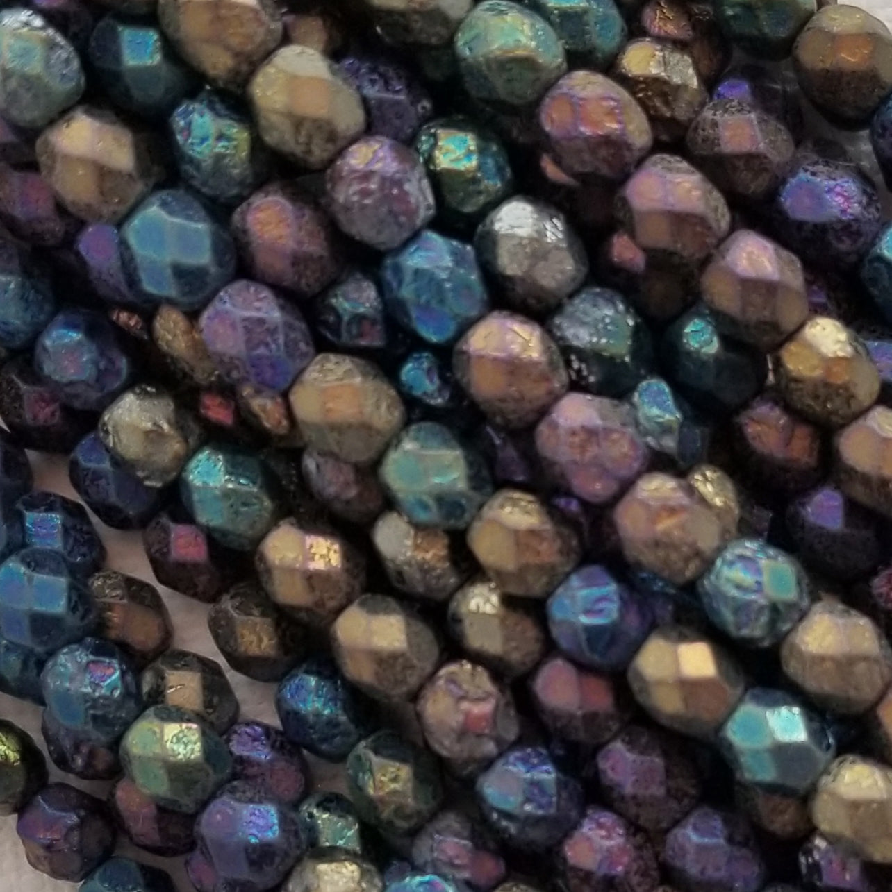6mm - Black Matte Rainbow Iris - Fire Polished
