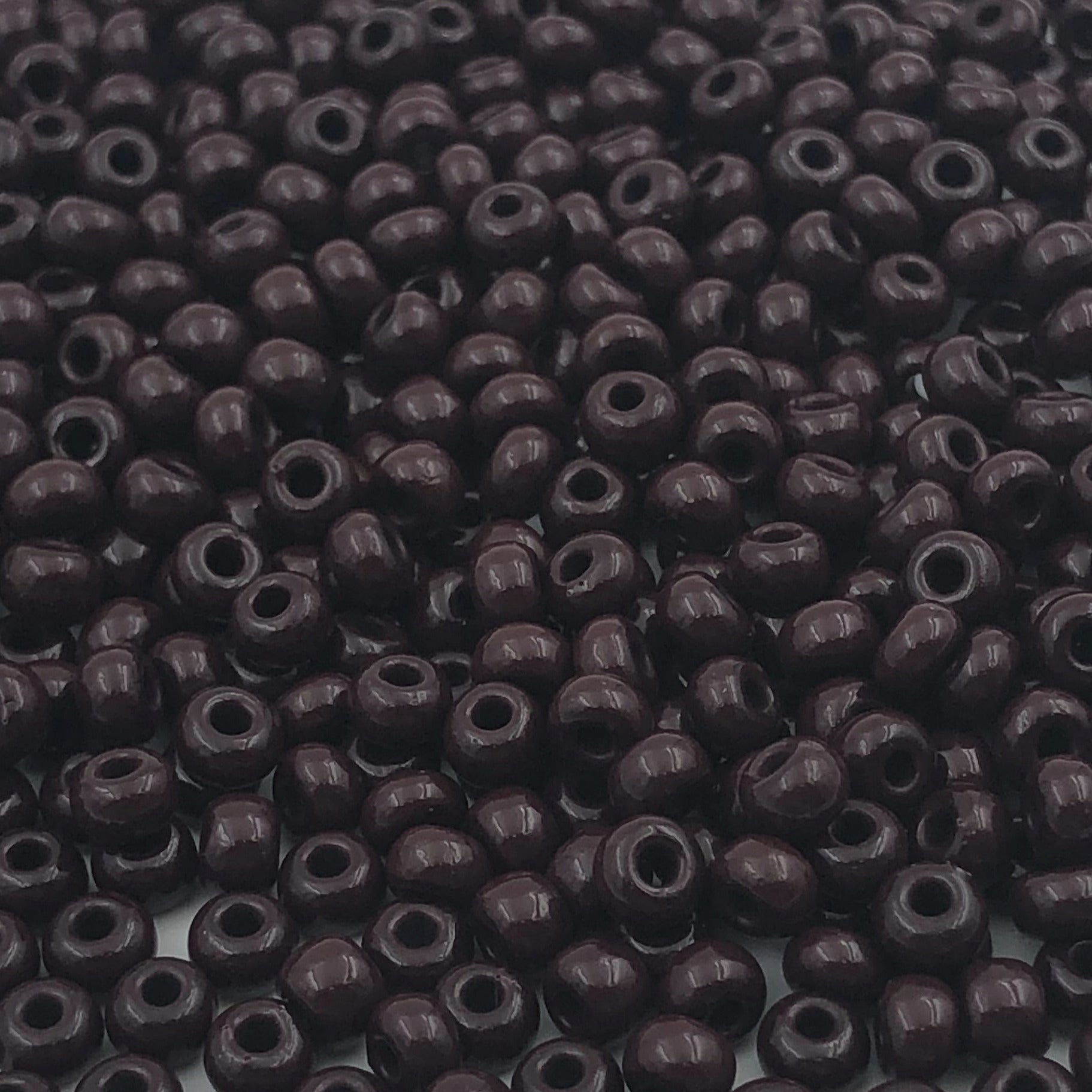 6/0 seed beads. Made in the Czech Republic. Czech seed beads are good quality, although not as uniform as Japanese seed beads.